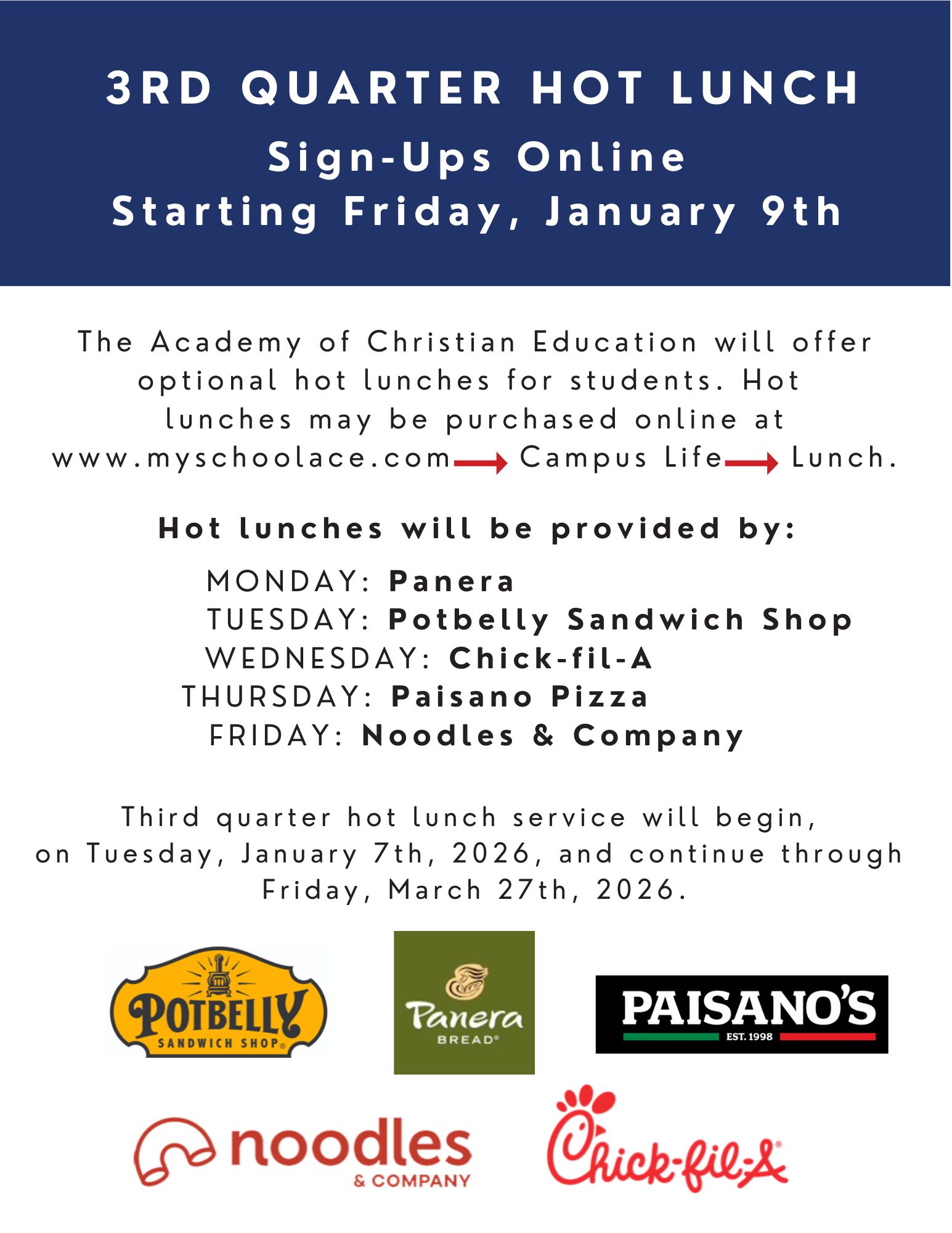 3rd Quarter Hot Lunches Provided By: